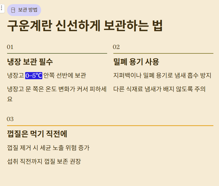 이 기준만 기억해도 구운계란을 안전하고 맛있게 즐길 수 있습니다.