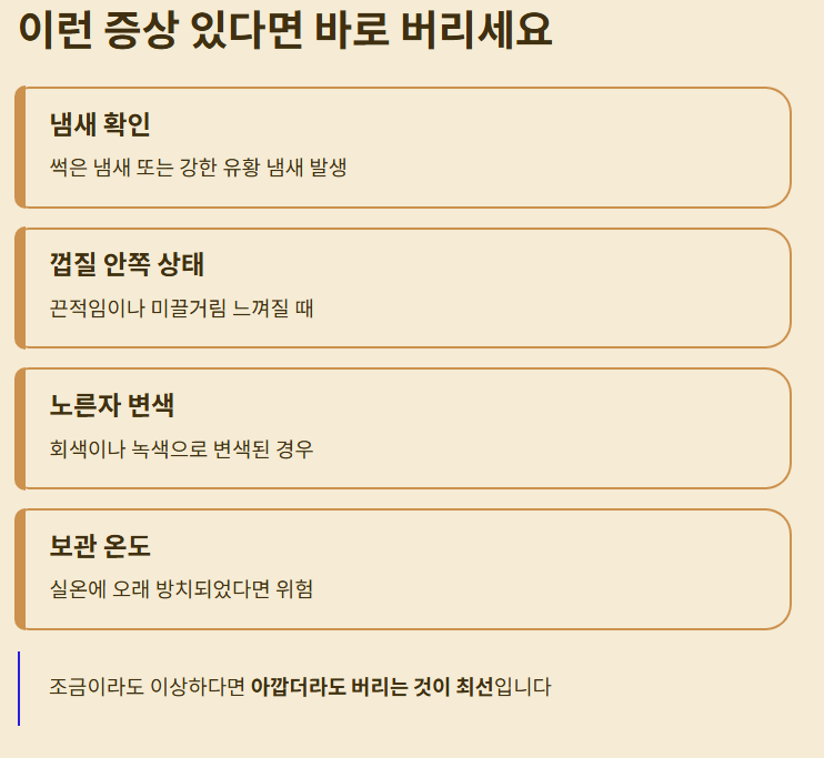 - 아이·노약자 섭취 시 특히 신선도 주의