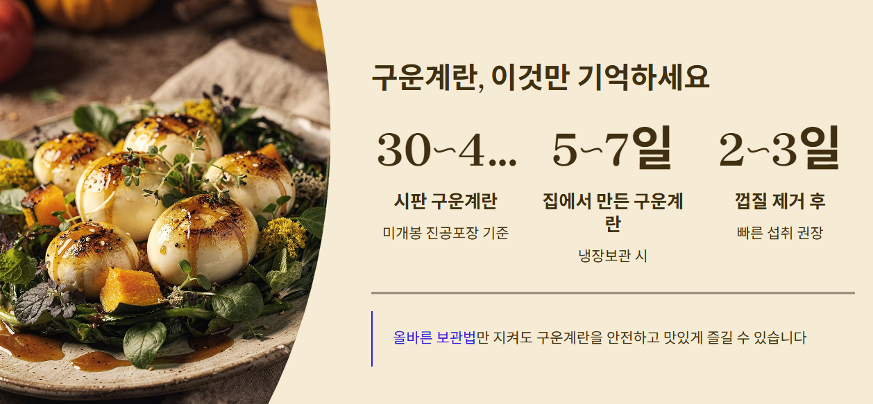 구운계란은 맛과 영양이 뛰어나지만, 유통기한과 보관법을 제대로 지키지 않으면 식중독 위험이 있습니다.